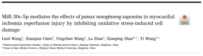 心肌缺血再灌注(MI/R)損傷是世界范圍內(nèi)嚴(yán)重威脅人類健康的病理過程。近年來,microRNAs(miRNAs)在 MI/ R 損傷發(fā)病機(jī)制中的作用越來越受到重視。在此,作者對心肌缺血再灌注損傷大鼠的心臟進(jìn)行了 miRNA 分析,并鑒定出 46 個(gè) miRNA 在心肌缺血再灌注損傷組和對照組之間的差異表達(dá)。作者特別關(guān)注其中一個(gè)變化顯著的 miRNA miR-30c-5p,證明了它在 tBHP 處理的 H9c2 細(xì)胞中對心肌細(xì)胞損傷的保護(hù)作用。miR-30c-5p 的過表達(dá)增加了 tBHP 刺激后心肌細(xì)胞的存活率,降低了 LDH 的釋放,減少了心肌細(xì)胞的凋亡,同時(shí)下調(diào)了 p53 的表達(dá)。值得注意的是,三七總皂甙(PNS)治療人 MI/ R 損傷后,miR-30c-5p 水平明顯升高,具有顯著的臨床療效。此外,miR-30c-5p 抑制劑足以阻斷 PNS 及其活性成分人參皂苷 Re 對 tBHP 誘導(dǎo)的心肌細(xì)胞損傷的保護(hù)作用。PNS 處理的細(xì)胞中 p53 蛋白的表達(dá)也降低。綜上所述,研究者們確定了心肌梗死 / 再灌注損傷的新 miRNA,揭示了 MI R-30c-5p 在心肌梗死 / 再灌注后心肌細(xì)胞損傷和凋亡中的關(guān)鍵作用,并闡明了 miR-30c-5p 依賴于 PNS 的治療機(jī)制。今后的研究有必要探討 MI R-30c-5p 和其他多種 miRNA 在 MI/ R 損傷的發(fā)病機(jī)制和治療中的內(nèi)源性意義。