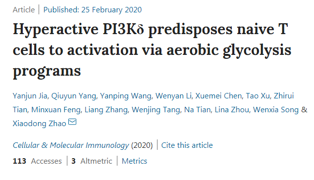 極度活躍的 PI3Kδ 通過有氧糖酵解激活幼稚 T 細(xì)胞