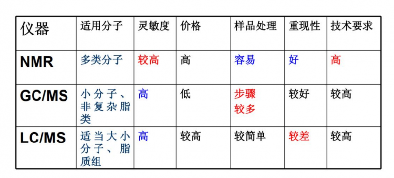 需要注意的是,受代謝產(chǎn)物特性(分子量大小、揮發(fā)性、極性等)和動(dòng)態(tài)變化范圍(濃度高低不同)的影響,目前沒有任何一個(gè)平臺(tái)能夠同時(shí)覆蓋到樣本中所有的化合物,需要通過改變前處理?xiàng)l件及各平臺(tái)相結(jié)合的并行檢測(cè)來改善。因此在選擇檢測(cè)平臺(tái)時(shí),需根據(jù)樣本情況及經(jīng)費(fèi)預(yù)算進(jìn)行綜合考慮。