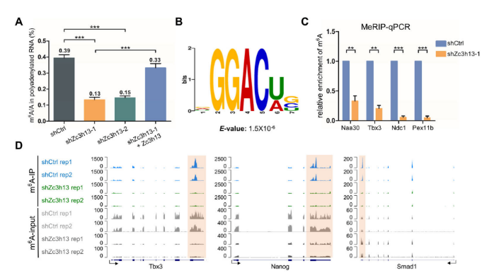 Zc3h13 在 mESCs 中調(diào)節(jié) mRNA m6A