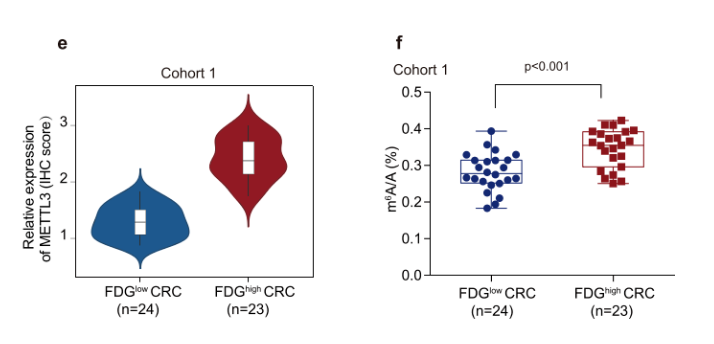 Fig1e FDG 高水平組中 METTL3 的表達(dá)水平更高;
