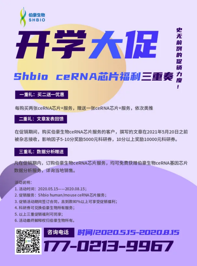 Shbio ceRNA 芯片自推出以來,助力伯豪客戶發(fā)表了多篇高分文章。來自天津平津醫(yī)院的研究團隊借助 Shbio human ceRNA 芯片 V1.0 篩選膠質(zhì)母細(xì)胞瘤(GBM)中特異高表達的 circRNA/lncRNA,通過進一步的分子機制及功能研究發(fā)現(xiàn) circNT5E 能夠作為 miRNA-422a 的海綿吸附體,抑制其活性,進而影響膠質(zhì)母細(xì)胞瘤的腫瘤發(fā)生。來自天津的另一研究團隊利用 Shbio human ceRNA 芯片 V1.0 檢測胃癌病人血漿外泌體中關(guān)鍵的 circRNA,通過一系列的研究發(fā)現(xiàn)外泌體中的 circRNA ciRS-133 可以通過靶向 miR-133/PRDM16 途徑促進白色脂肪褐變。