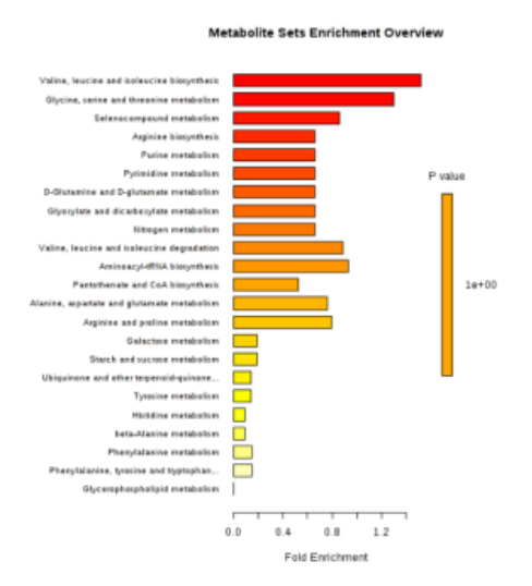 另外發(fā)現(xiàn) negRA 和 PsA 患者之間的脂質(zhì)比率 L3 / L1,L5 / L1 和 L6 / L1 有統(tǒng)計學差異在 PsA 中均較高(圖 4A)。比較兩組時,某些代謝途徑明顯富集(圖 4B)。