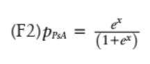每種代謝物的濃度、年齡和性別(男性 =1,女性 =0) 代入公式中。然后,通過替換在 F1 中獲得的結(jié)果×來計算屬于 PsA 組的概率: